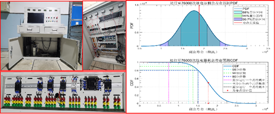 搭建继电器智能预测性维护系统,对继电器时间参数、电参数等特征参数采集后,利用维纳过程、高斯过程回归、DS证据等实现继电器健康状态评估及剩余寿命预测。