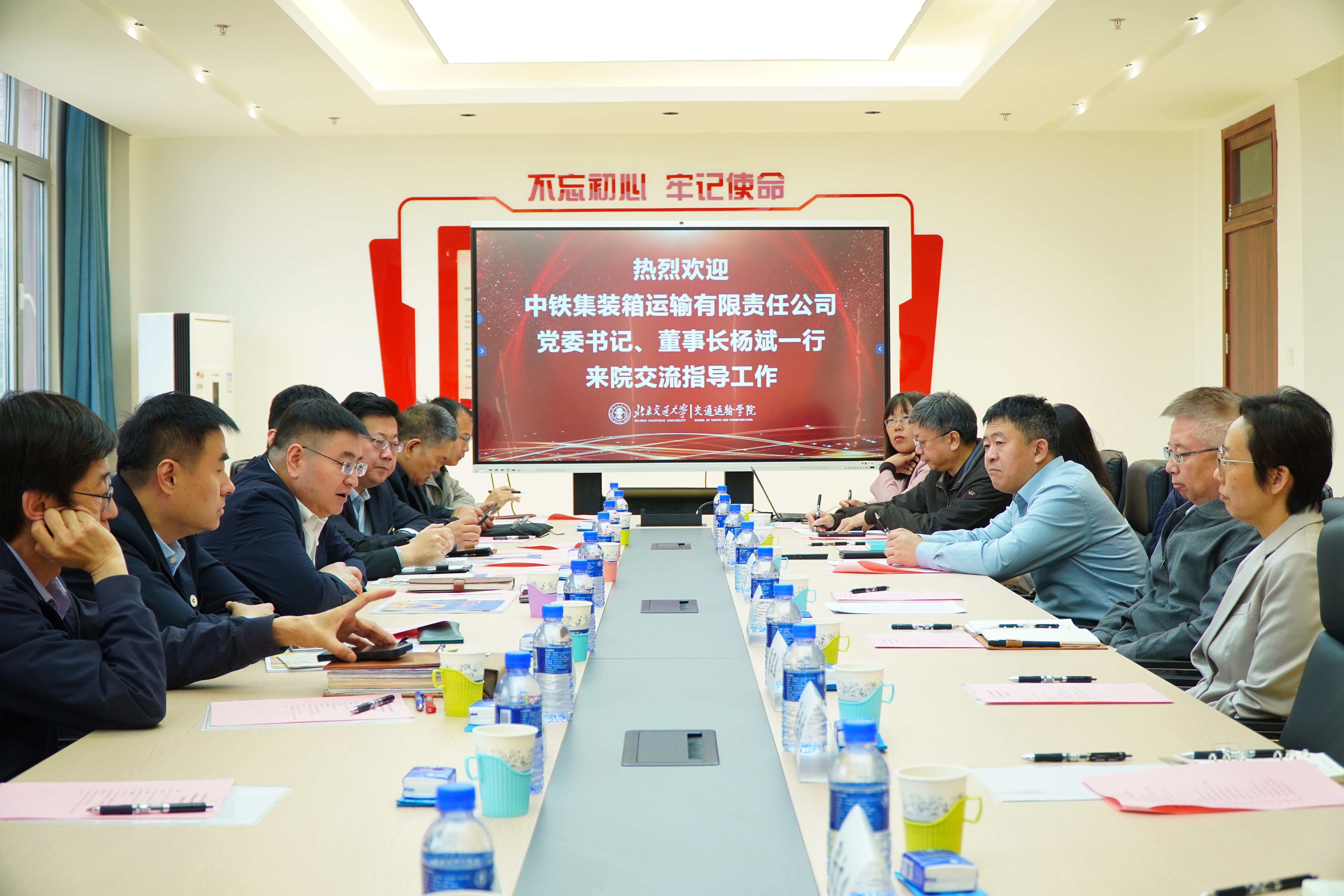 2026年4月14日上午,中铁集装箱运输有限责任公司党委书记、董事长杨斌一行到访我院就深化校企交流合作进行座谈。副校长赵鹏,学院党委书记孙冬梅,院长孟令云,党委副书记、副院长陈军华,党委副书记于海妹,副院长何世伟以及各系所负责人参加座谈。会议由党委书记孙冬梅主持。